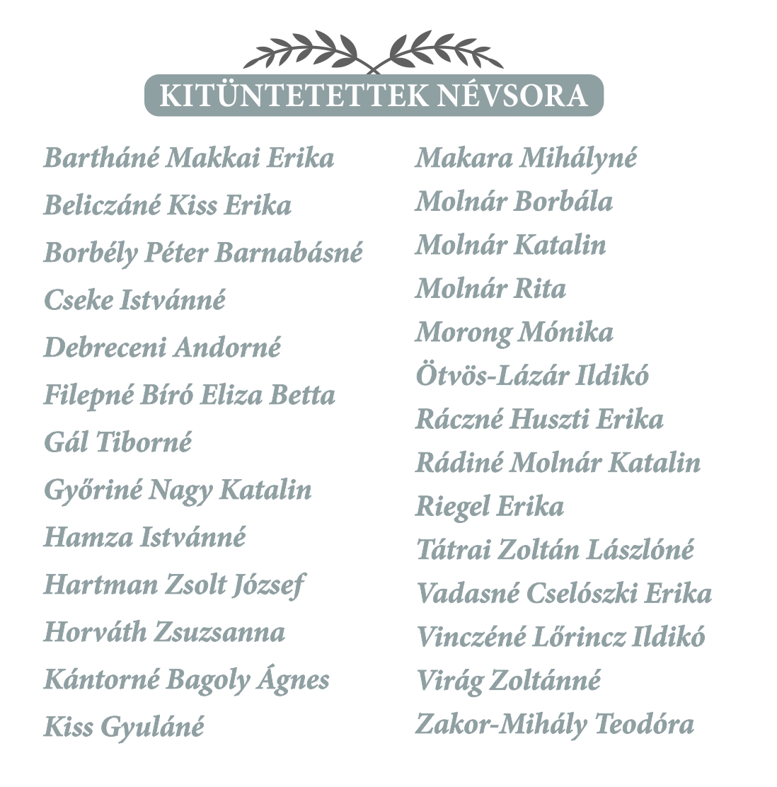 Az elismerés azonban természetesen valamennyi ápolónkat, egészségügyi szakdolgozónkat megilleti, hiszen az év minden napján fáradhatatlanul, példaértékű hivatástudattal, szakmai tudással és alázattal tesznek meg minden tőlük telhetőt betegeink gyógyulásáért.