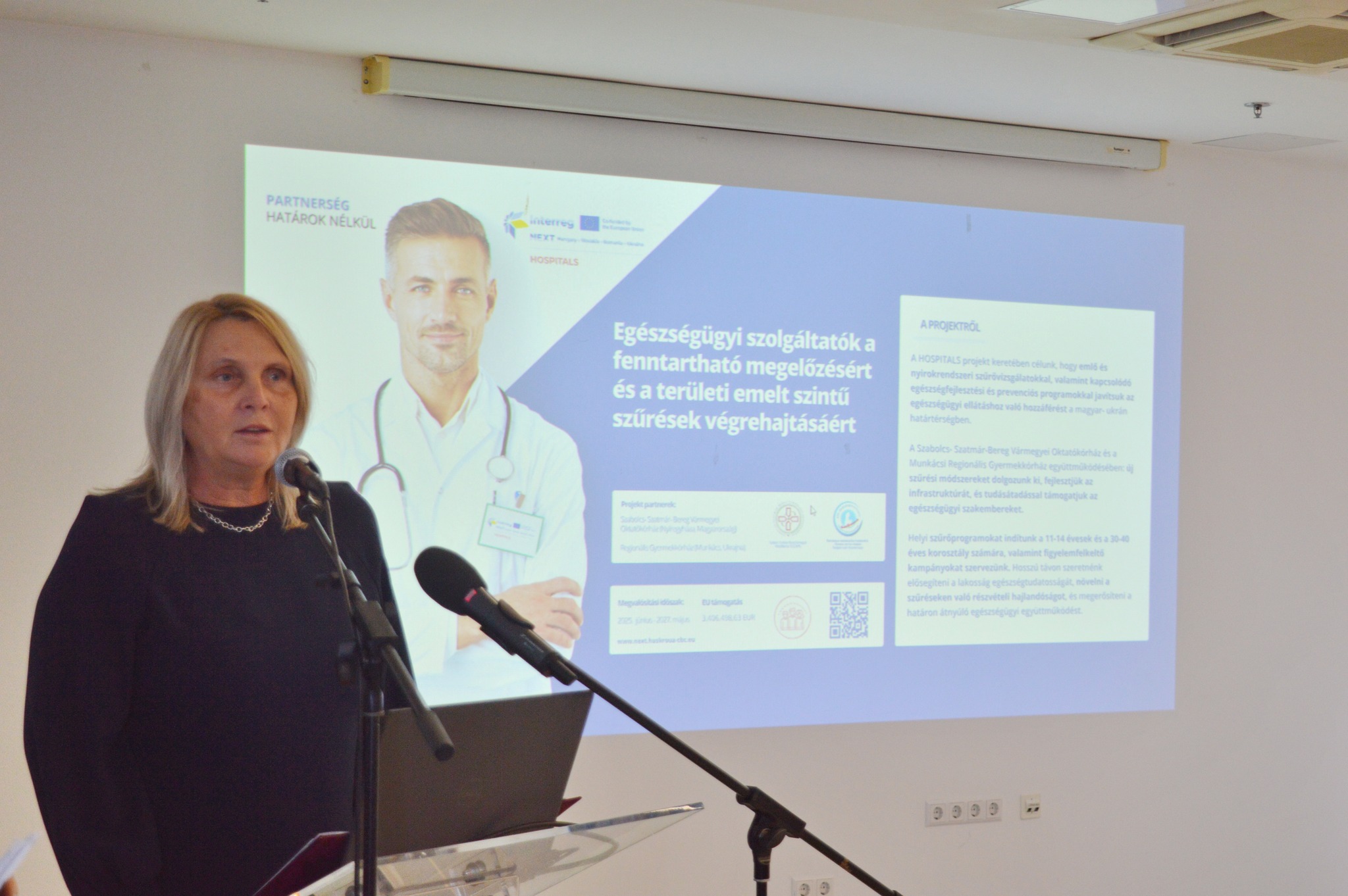 Nyíregyházán, a Jósa András Tagkórházban megrendezett nyitókonferencián mutatták be a „HOSPITALS – Egészségügyi szolgáltatók a fenntartható megelőzésért és a területi emelt szintű szűrések végrehajtásáért” című projekt eredményeit és további célkitűzéseit.